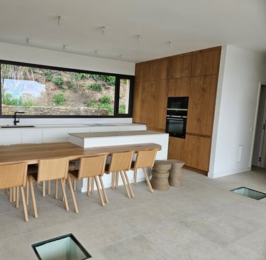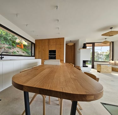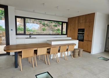 Cuisine blanche et bois, ouverte et épurée