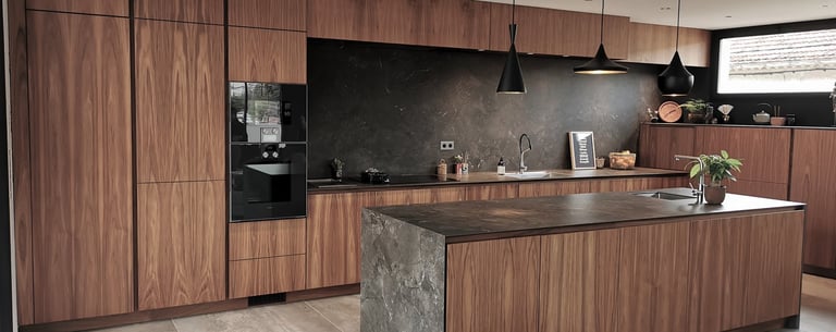 Cuisine bois foncé et pierre : un style affirmé et naturel