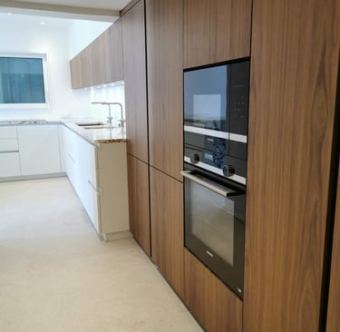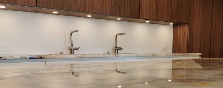 Tout a été conçu sur mesure, jusqu’au moindre détail : du rangement parfaitement intégré à la double zone évier, pensée pour cuisiner à deux sans se gêner.