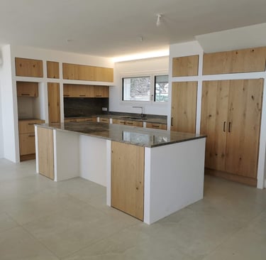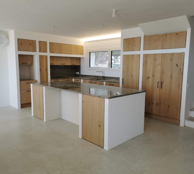 Un ilot central spacieux vient compléter l’aménagement, idéal pour cuisiner ou partager un moment convivial.